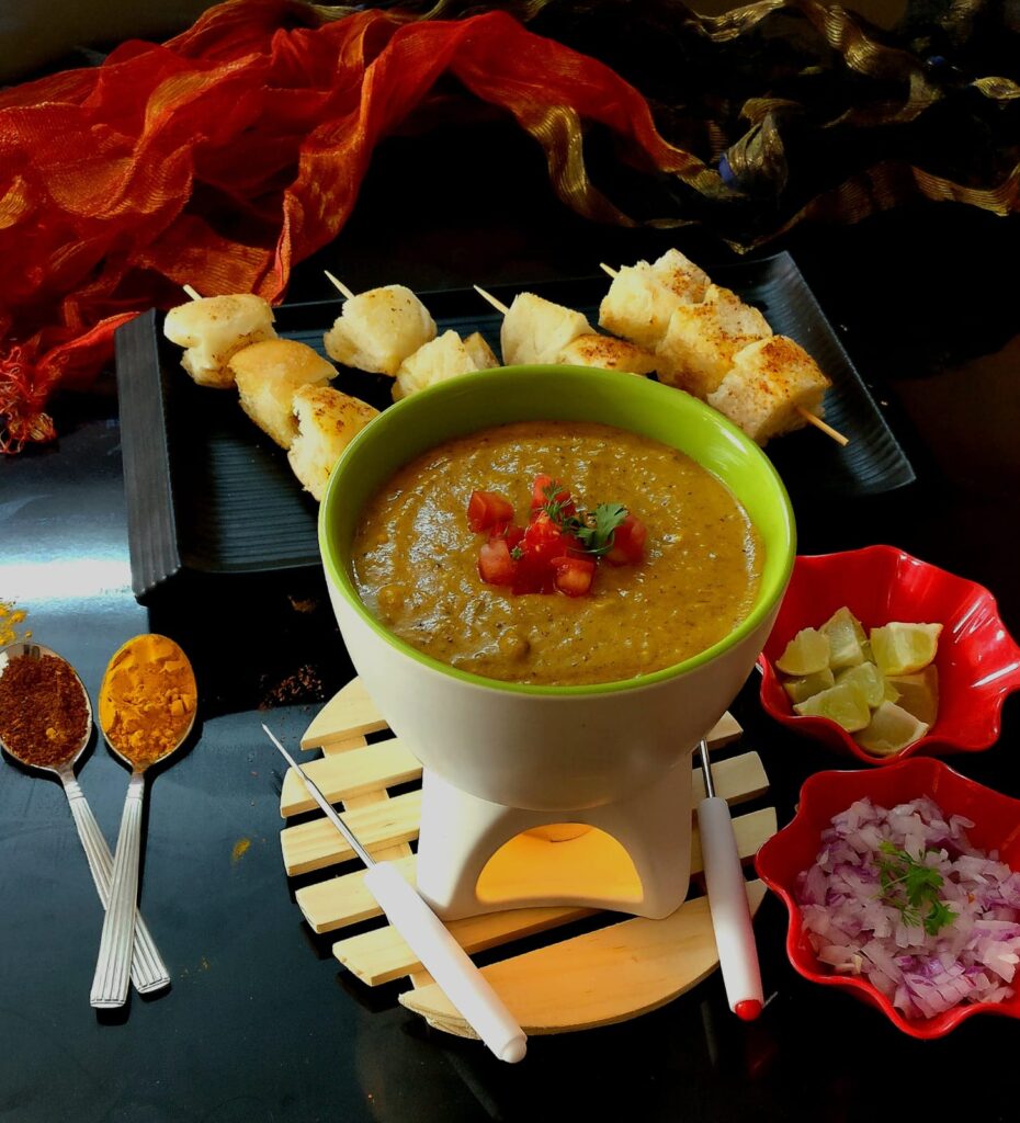 Mumbai’s iconic pav bhaji reimagined as a crunchy, fusion-style bruschetta.