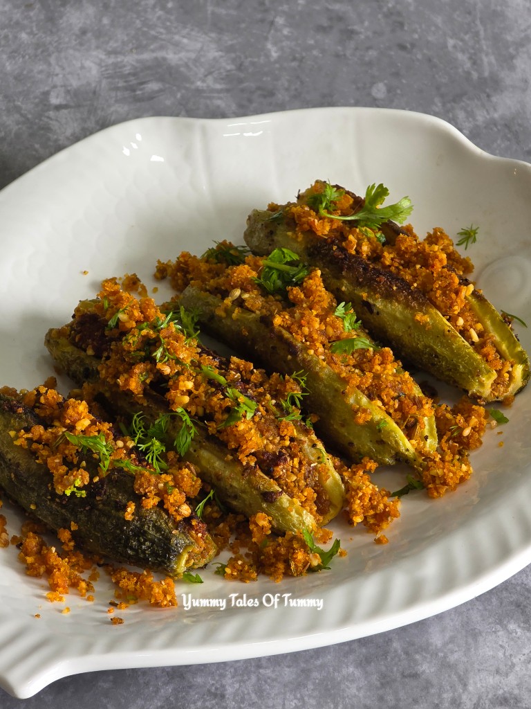 It’s stuffed with a spicy nutty flavorful masala mix. It’s a delicious dish from plethora of Indian recipes like No onion no garlic kaju karela recipe .