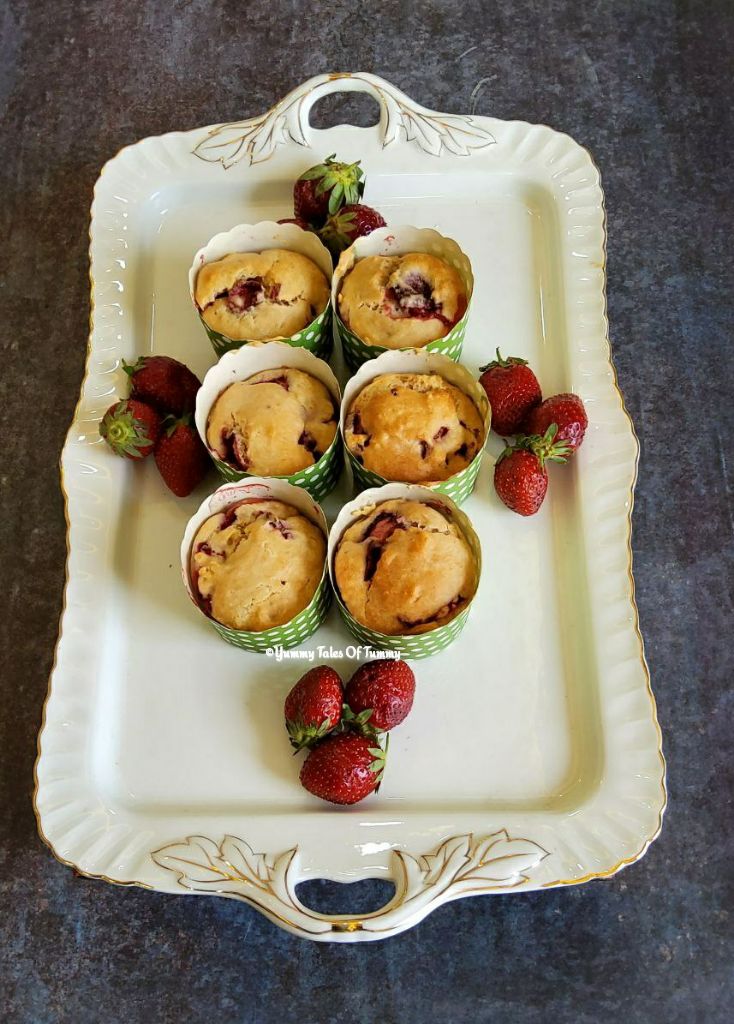 Eggless fresh strawberry muffins recipe