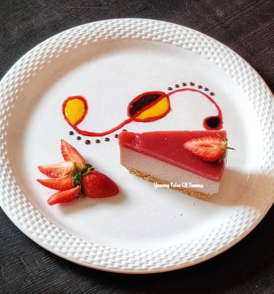 Eggless no bake Strawberry cheesecake