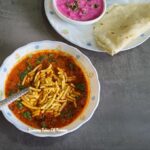 In the last, namkeen sev is added while serving the curry so that it doesn’t turn soggy. Serve this with Jowar Roti or rice roti.