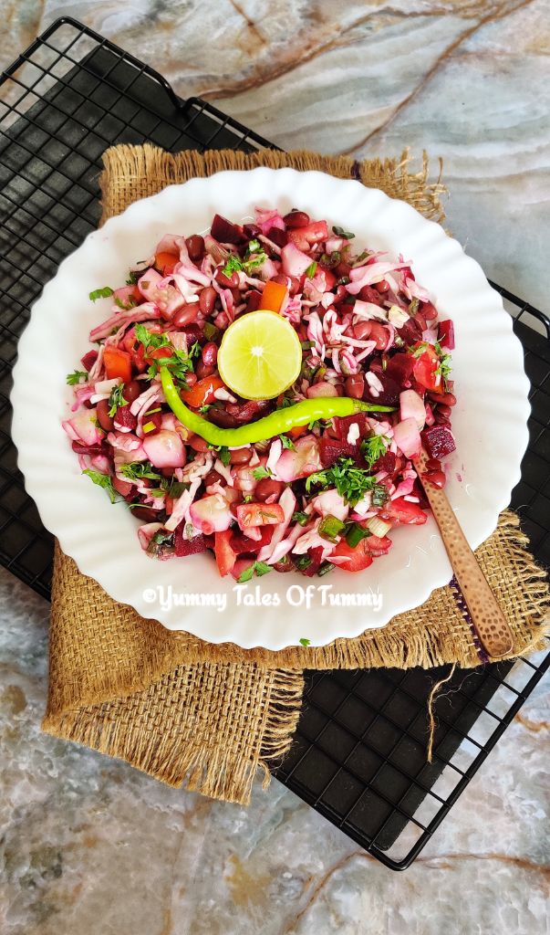 I had some leftover boiled rajma/kidney beans & beetroot in the fridge so it was a breeze for me to make this salad.