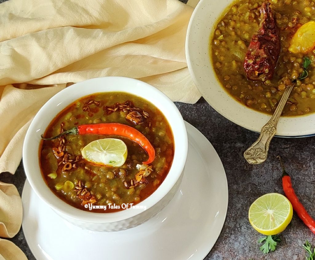 - Garnish Sabut Masoor dal with chopped coriander leaves. Dal is ready to be served with chapati/Roti or rice.