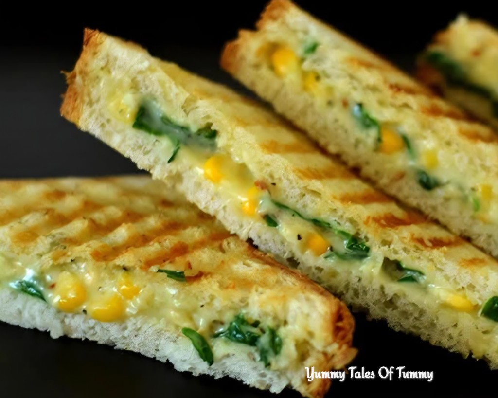 Well, let me introduce you to this amazingly creamy and delicious Spinach Corn Sandwich Recipe | Palak sweetcorn sandwich recipe.