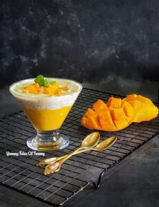 - After soaking cha seeds for 2 hours, you can add mango puree, cover it, and refrigerate overnight. Or keep them separately and add later by layering them.