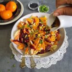 You may add crumbled Paneer or feta cheese over this salad.To add some greens serve this on the bed of lettuce leaves.Walnuts also go well in this salad. Feel free to add dry fruits of your choice.
