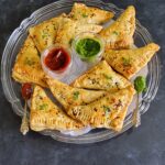 Puff pastry Samosa Recipe (Air fryer method) is a modern version of deep-fried Indian snack. Usually made in triangular shape, the Samosa is stuffed with sauted onions, boiled potatoes, green peas, some Indian spices and fresh herbs.They are great party appetizer, game night or movie night food.
